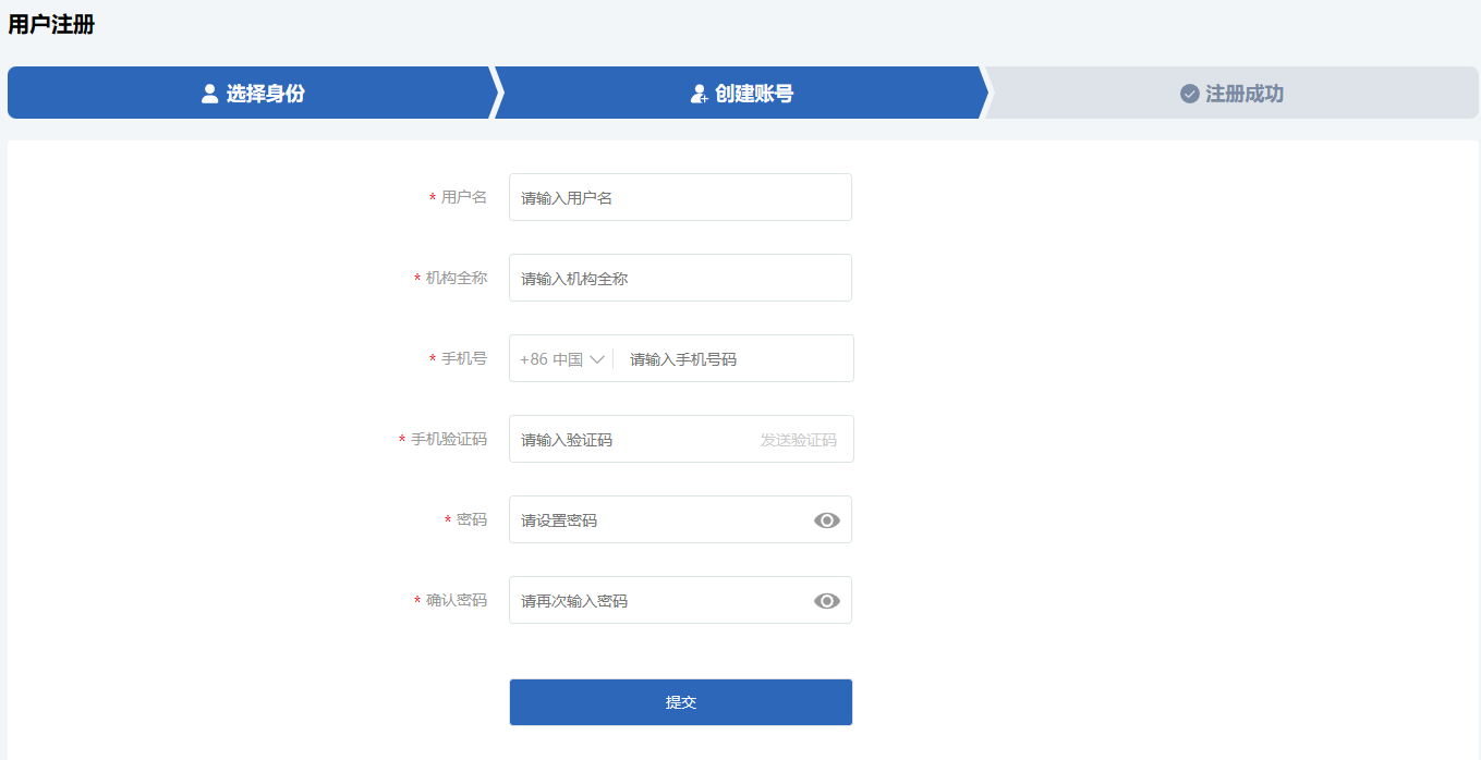 3:以下为企业注册页面,手机号是负责管理这个企业注册软著的联系人的手机号 做申请表时需要验证码 务必准确,填写好信息后,提交,注册成功。